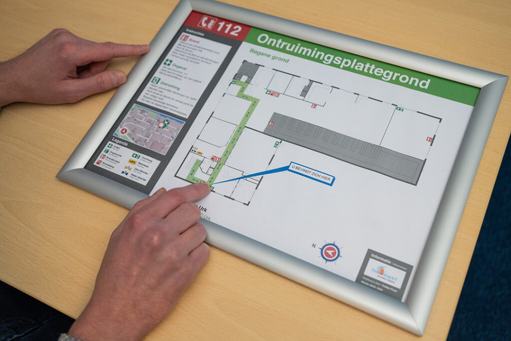 Om een veilige en spoedige ontruiming van een gebouw mogelijk te maken is een Ontruimingsplattegrond een belangrijk instrument. Wij beschikken over de kennis en middelen om voor u een duidelijke ontruimingsplattegrond op te stellen, conform de geldende norm en in uw huisstijl.